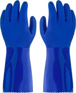 Ideal for industrial environments, wholesale PVC industrial gloves offer robust protection against harsh chemicals and other hazards, ensuring safety and durability in high-risk work settings.