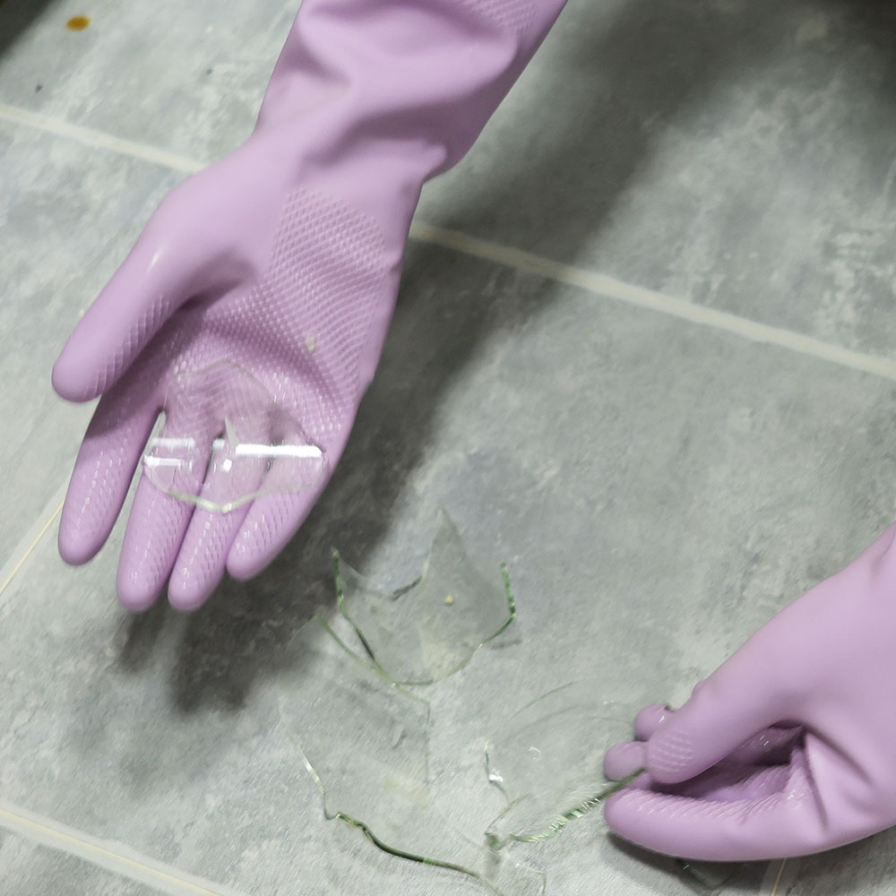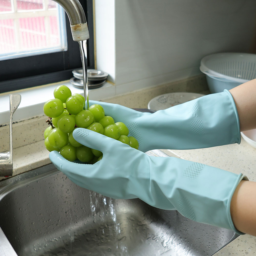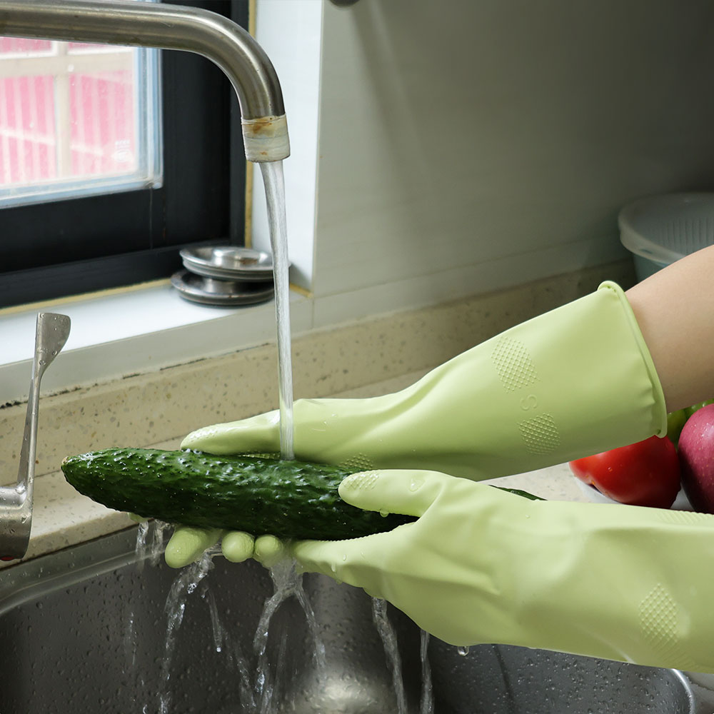 - Material: These household cleaning gloves are made of soft and skin-friendly natural rubber, providing protection from corrosive liquids and keeping your hands and clothes dry. Initially, they may have a rubbery smell, but airing them out should eliminate the odor